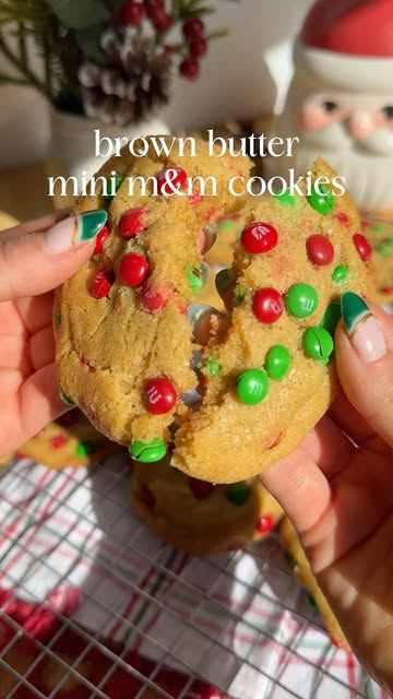 brown butter mini m&m cookies 🍪🎄 Hear me out… mini m&ms are the superior m&m 🫢🫢 In a sauce pan, brown 1 c of unsalted butter over medium heat. Once browned, allow the butter to cool for 10 mins. Then mix with 1 1/4 c brown sugar & 1/3 c granulated sugar. Then add 1 egg + 2 egg yolks & 1 tbsp vanilla extract. In a separate bowl, combine 2 c flour, 1 tsp baking soda, & 1/4 tsp salt. Fold into the wet mixture. Then add 1 1/2 c mini m&ms. Refrigerate for 30 mins then bake at 350 for 10-12 minutes. Allow the cookies to sit on the baking tray for 10 minutes before transferring to a cooling rack. QOTD- what’s your favorite m&m?