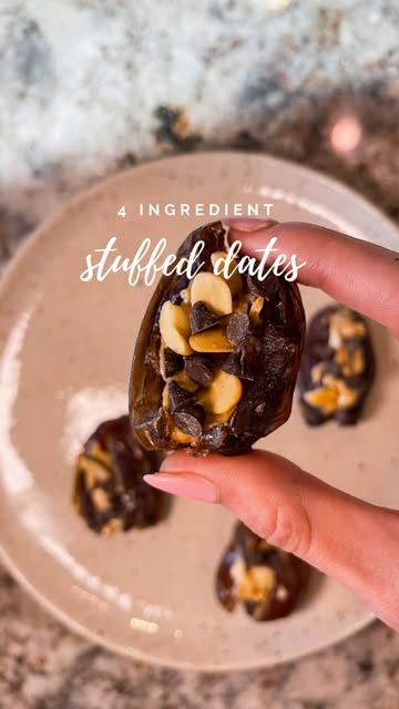 Cut a date down the middle. Fill the date with any nut butter (e.g., crunchy peanut butter). Add chopped peanuts and mini chocolate chips to the filling.View original recipe